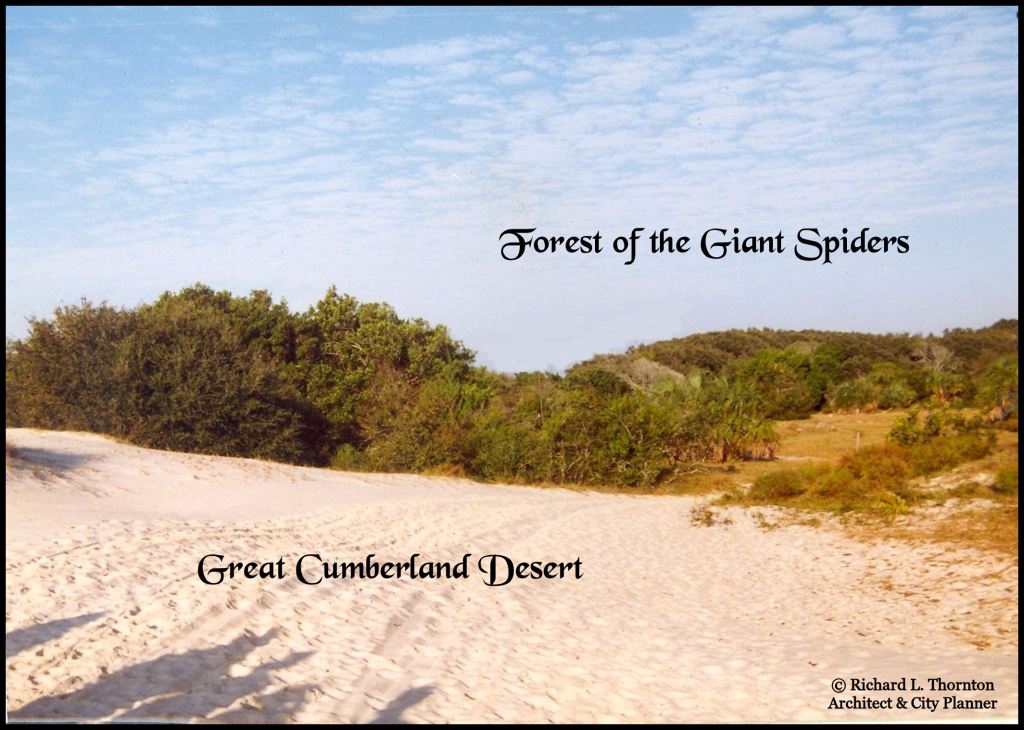 Eastward from the Forest of the Giant Spiders I encountered a real desert. The terrain and vegetation did not look like anything that one would expect to see in the Southeastern United States. The only plants growing there were cacti and yucca plants. It was time to go back to camp to greet the gals from Darien.
