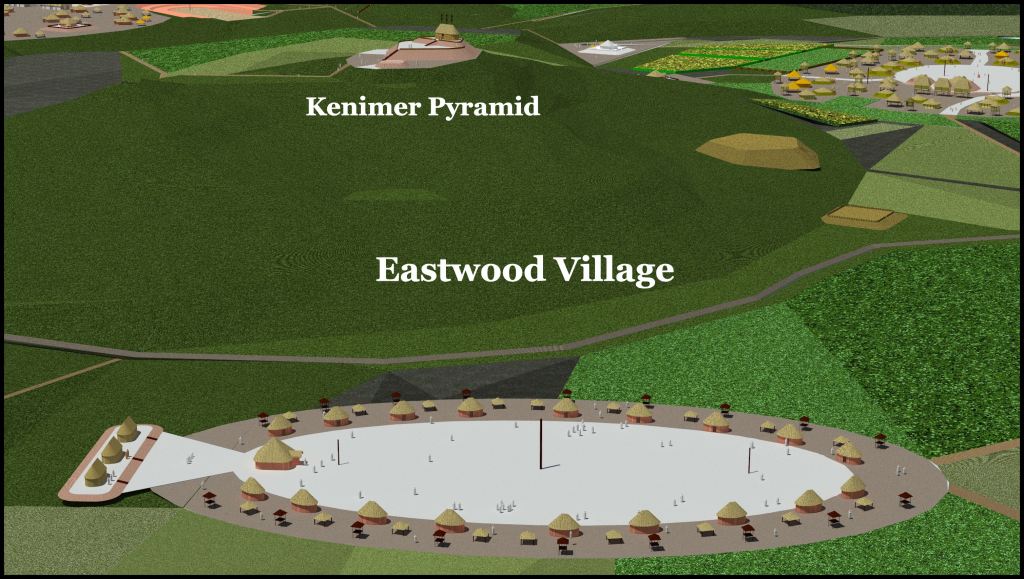 Relatively large oval Maya houses formed an oval plaza on a southwest to northeast orientation. Smaller oval houses were clustered along asymmetrical pedestrian lanes. A three lane “avenue” extended northeastward from the plaza to connect with the stone ruins of the towns original governmental acropolis.