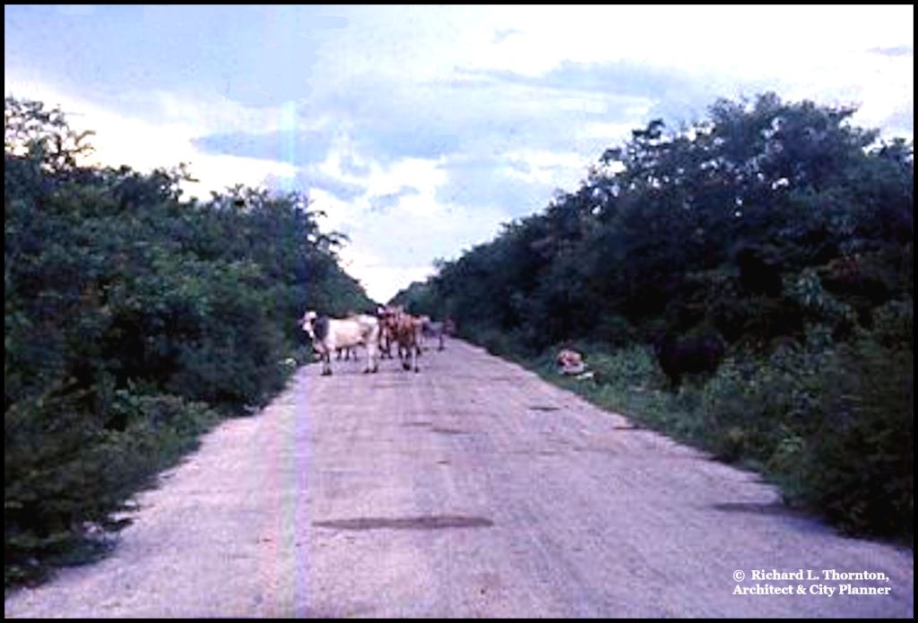 This is a five-decade old color slide of the only paved road in the State of Campeche, east of its narrow Coastal Plain. The highway had virtually no signs and there was no accurate road map of any part of the Yucatan Peninsula.