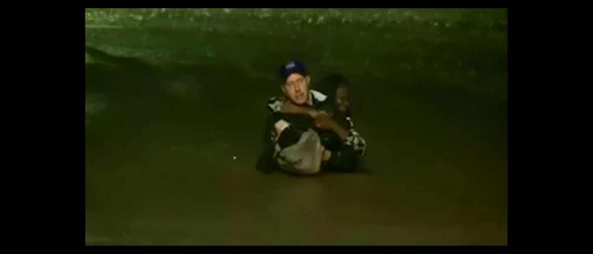 The brave meteorologist did not hesitate. He handed his microphone and wallet to a crew member and charged into the dangerous waters. He got to the woman just as the water was about to reach her mouth. She was in emotional shock by the ordeal, but thanks to his bravery, she was not harmed physically.