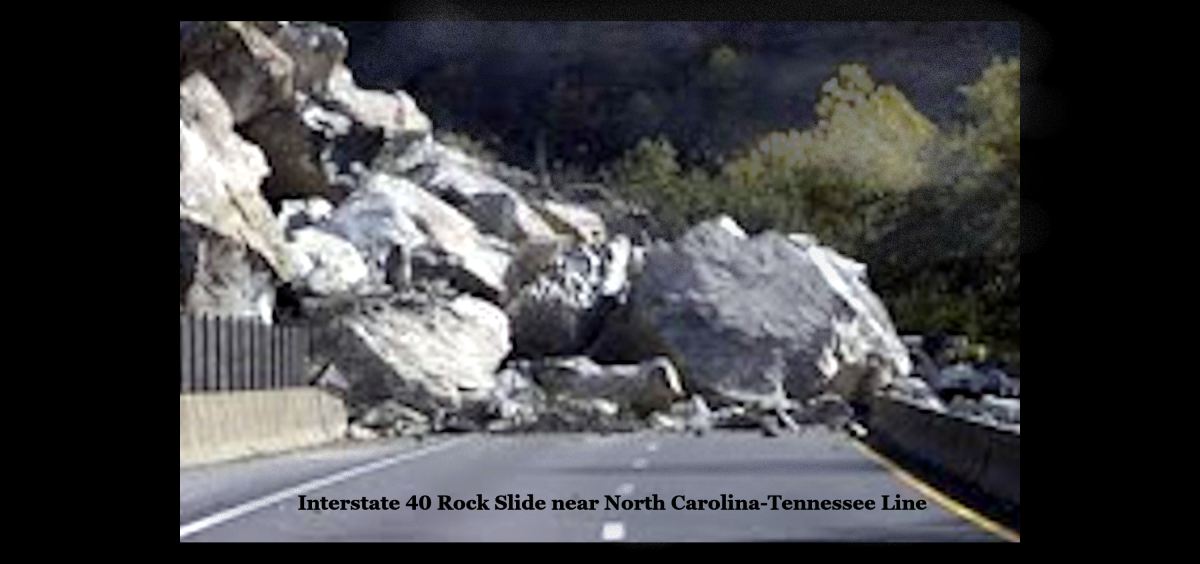 Interstate highway 26 near Erwin,TN. Unpassable into NC. Interstate 40 rock slides as your photo.