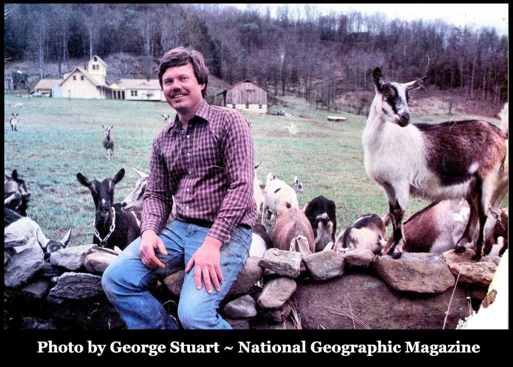 This photo was made for National Geographic almost exactly 40 years ago, when I had started the nation’s second licensed goat cheese creamery . . . still at that time the only one outside of California. I was looking across narrow Blackberry Inn Road, beyond which was a natural buffer required by the State of North Carolina for trout streams then sparkling Reems Creek.