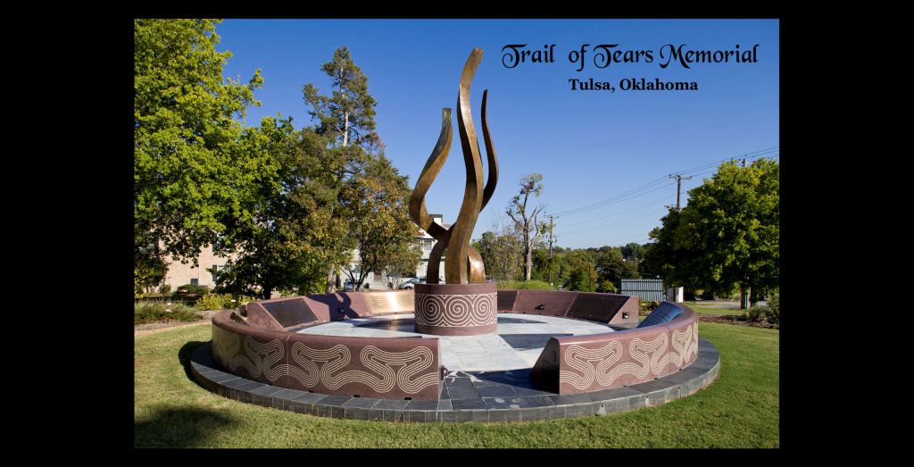 The large town models were built during 2005 through 2008. The Trail of Tears Memorial was designed jointly by Dan and I in 2008 and early 2009. It contains building materials from both Oklahoma and Georgia. The monument was constructed entirely by Dan Brook. Yes, really! I tossed out three sets of obviously rigged bids. Oklahoma contractors were accustomed to “pork-bellying” state-funded projects. The Oklahoma Centennial Commission then asked Dan to build it and he did a magnificent job.