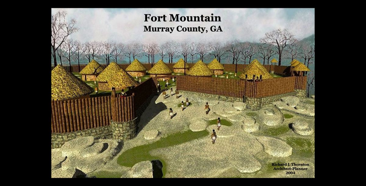 The rendering was presented to 2004 Spring meeting of the Society For Georgia Archaeology, which was actually held at the Fort Mountain Retreat and Conference Center. I had been a member of SGA since moving to the townhouse near Etowah Mounds in 1995.