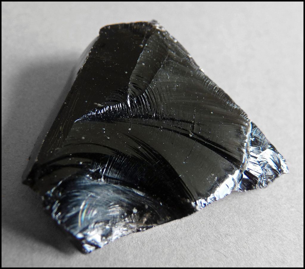 When retrieved from damp, clay soil, an obsidian artifact may look like chert, a relatively common, black metamorphic rock from regions of the Southeast with sedimentary rock strata. Native Americans frequently used chert for atlatl points and war arrowheads. Chert is a sedimentary rock that’s made of silicon dioxide in the form of microcrystalline quartz. It’s hard, dense, and brittle, with a conchoidal fracture that produces smooth, sharp edges. However, obsidian is generally somewhat translucent. Chert is not, even though, chemically it is similar to obsidian. Obsidian has been vitrified by extreme heat.