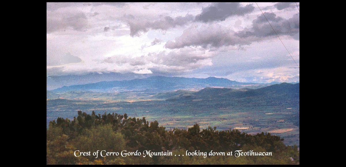 This is a view of the Teotihuacan Valley from the top of 10,000 feet high Cerro Gordo, which frames the Pyramids of the Sun and Moon in many photos of Teotihuacan. I am probably the only person in this end of Habersham County, GA who has climbed Cerro Gordo. LOL Actually, I might be the only person in the United States, who has done so. I only know of one Mexican archaeologist, who did this, after seeing my video on the climb.