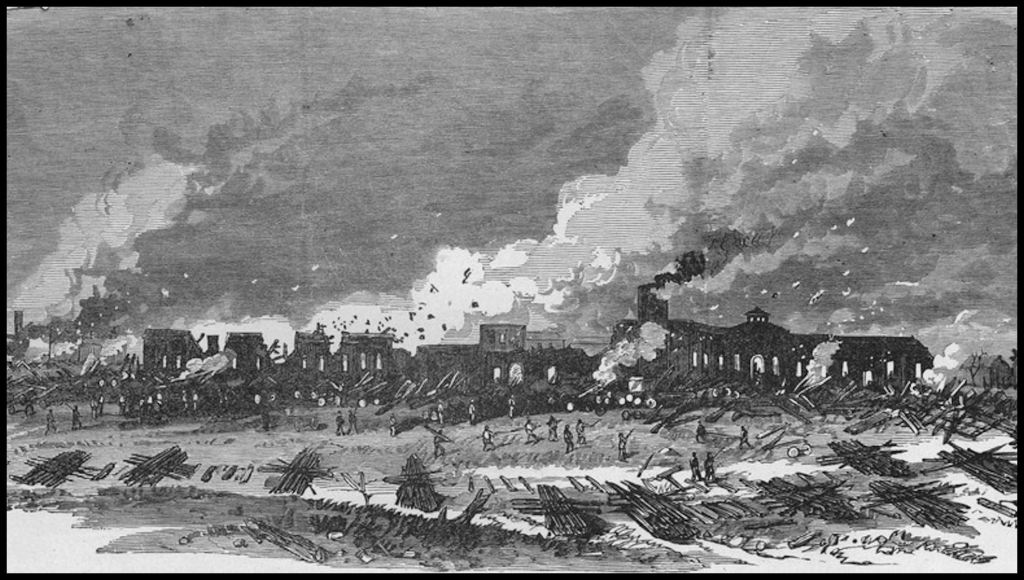 Soldiers of the First Ohio Volunteer Regiment burning Downtown Cartersville, GA