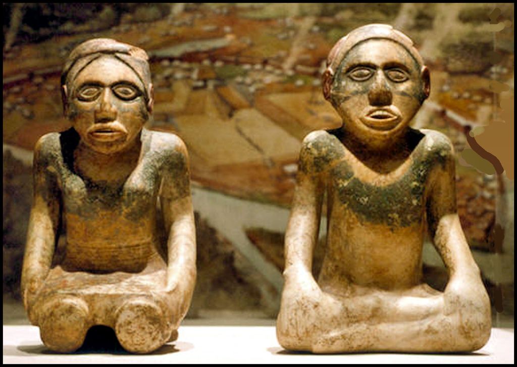 The female, who inspired one of the Etowah statues, resembled these two young Itza Maya women