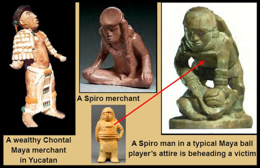 Note the fancy coonskin caps on both the merchant from Jaina Island, Yucatan and the redstone figurine, unearthed in Spiro, Oklahoma.