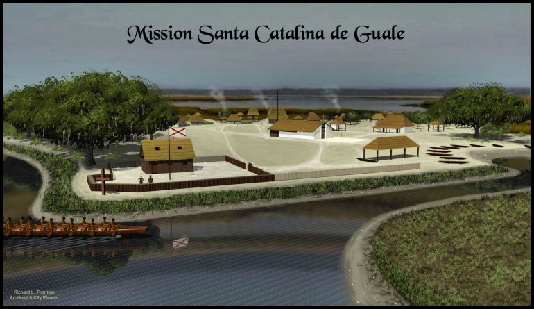 In its last phase, Mission Santa Catalina de Guale was protected by a small fort, garrisoned by a company of Spanish soldiers, assisted by a militia of mission Indians, armed with Spanish weapons. By then, the mission system had been decimated by pirates and slave raiders.