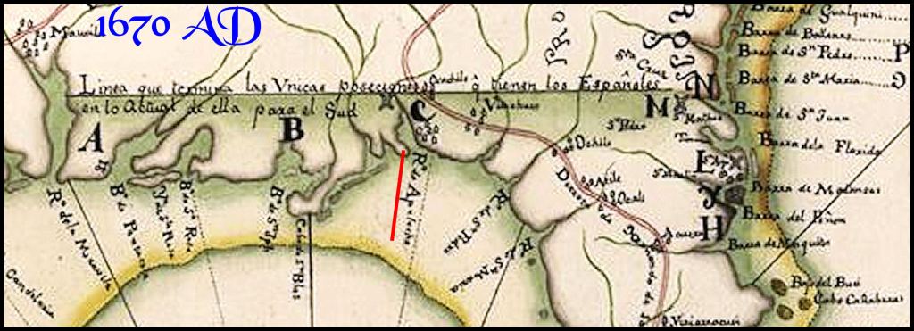 At least as late as 1670, the Spanish did not even know that the St. Johns River existed. San Juan was initially the name of Amelia Island! Until the 1820s, even the occupants of Native American canoes had to get out of their canoes and WALK through the shallow waters of the St. Johns’ mouth. The St. Johns River was not accessible to sea-going vessels until 1860.