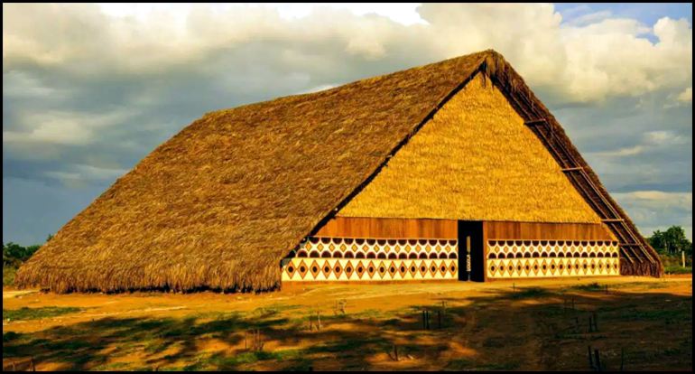 Shipibo Longhouse apartment building in the Amazon River Basin