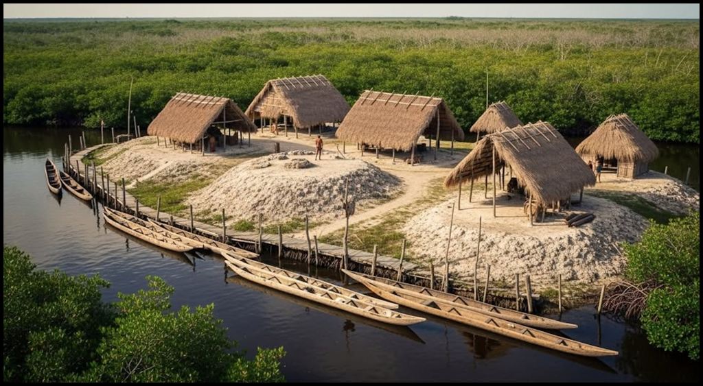Calusa hamlet with open-sided longhouses on Florida Gulf Coast