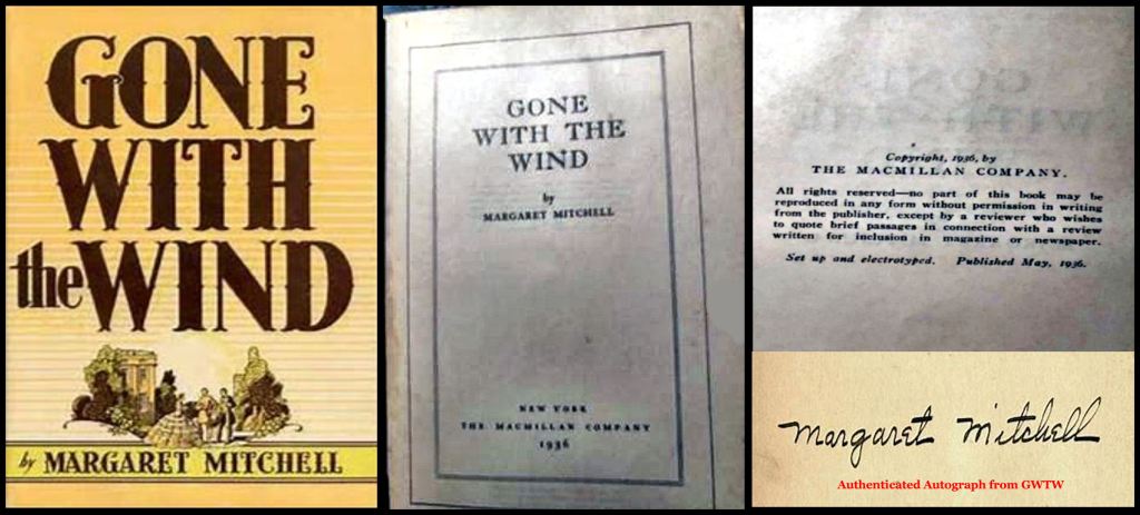 Life is indeed a box of chocolates . . . Into the tapestry of life are written strange patterns that cannot be logically explained by individual woofs and warps. Yes, above you see a photo of the first edition of Gone With the Wind, autographed by Margaret Mitchell at a meeting of the Northside Atlanta Womens Club in May 1936. I inherited it at age 17 from my Great-Aunt Lucille, who was a friend of Margaret Mitchell.