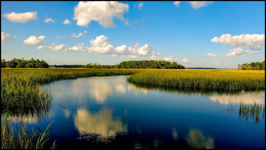 In the spring of 2004, Susan Karlson and I camped out near St. Marys, GA then explored by canoe the tidal marshes (plus fished) near Cumberland Island. The National Park Service would not let us take my dog and canoe on the ferry to Cumberland . . . hence, the reason that we camped on the mainland.