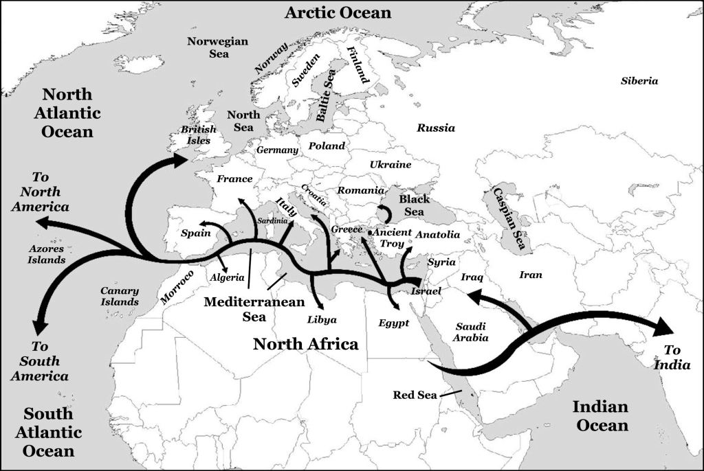 For his book, The Counter-currents of Prehistory, Dr. Yates used computer programs to map out the occurrence of these minority genes among Pre-1492 human remains throughout the planet. The results were astonishing and absolutely change our understanding of mankind’s past.
