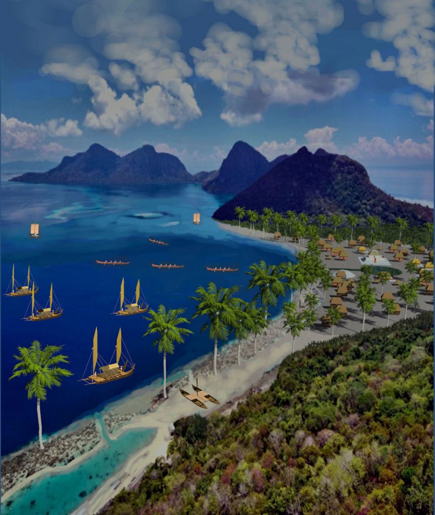 The Austronesians arrive in Sarawak Bay, Borneo by Richard L. Thornton, Architect