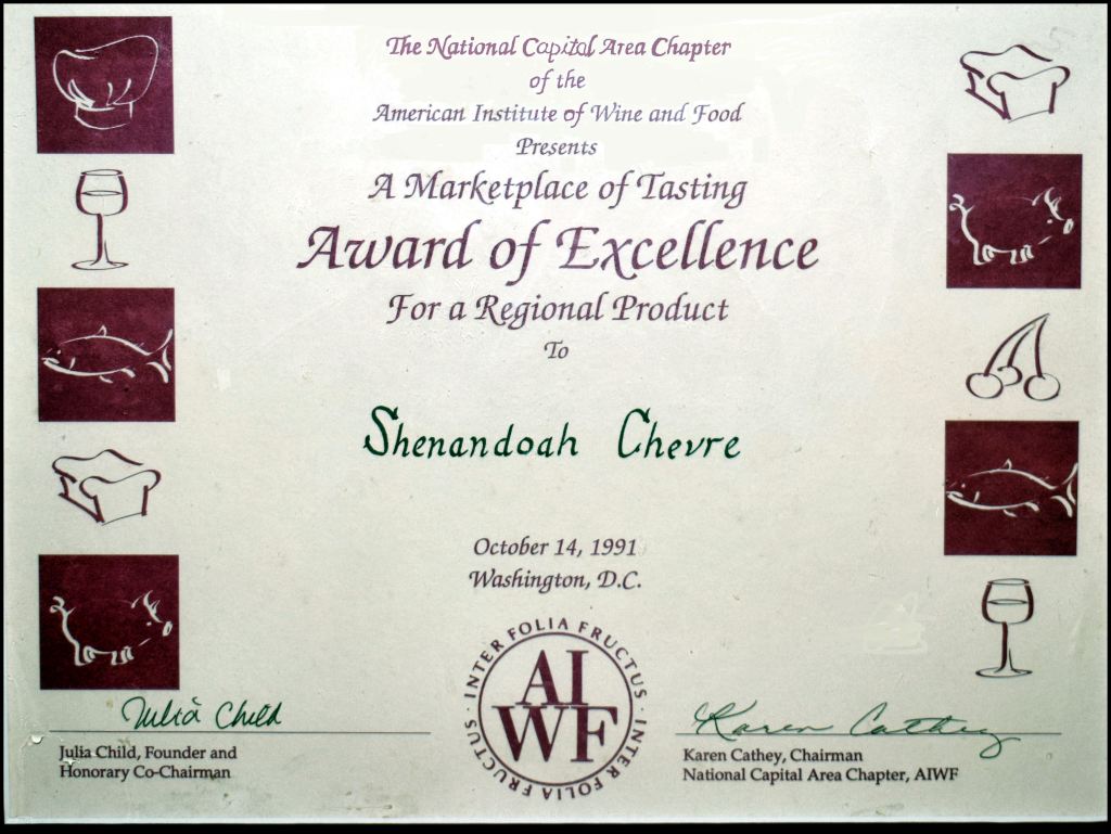 It’s probably a good thing that I didn’t turn on the TV that night. Because my real wife never showed up for the filming, NBC obtained film from the staff at the National Capitol of Vivi and I touring the Capitol, holding hands. Then, while I was sampling cheese at the October 14, 1991 Gourmet Food Exposition at Union Station, they interviewed Vivi. The one-hour program included long interviews with Vivi and Julia Child chatting away in French about French wines and Virginia goat cheeses then Vivi was interviewed alone about how we fell in love and daily life on our farm. Much of her story was fictitious, but she WAS an actress . . . and, at that time, taking courses at the Cordon Bleu Ecole de Cuisine in Paris.