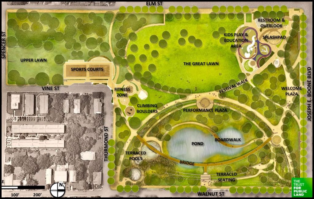 Site Plan of Rodney Banks, Sr. Peace Park by planners of the Trust for Public Land